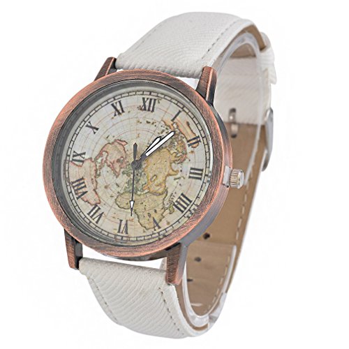 -. Title : Souarts Womens Artificial Leather World Map Pattern Round Quartz Wrist Watch 24cm