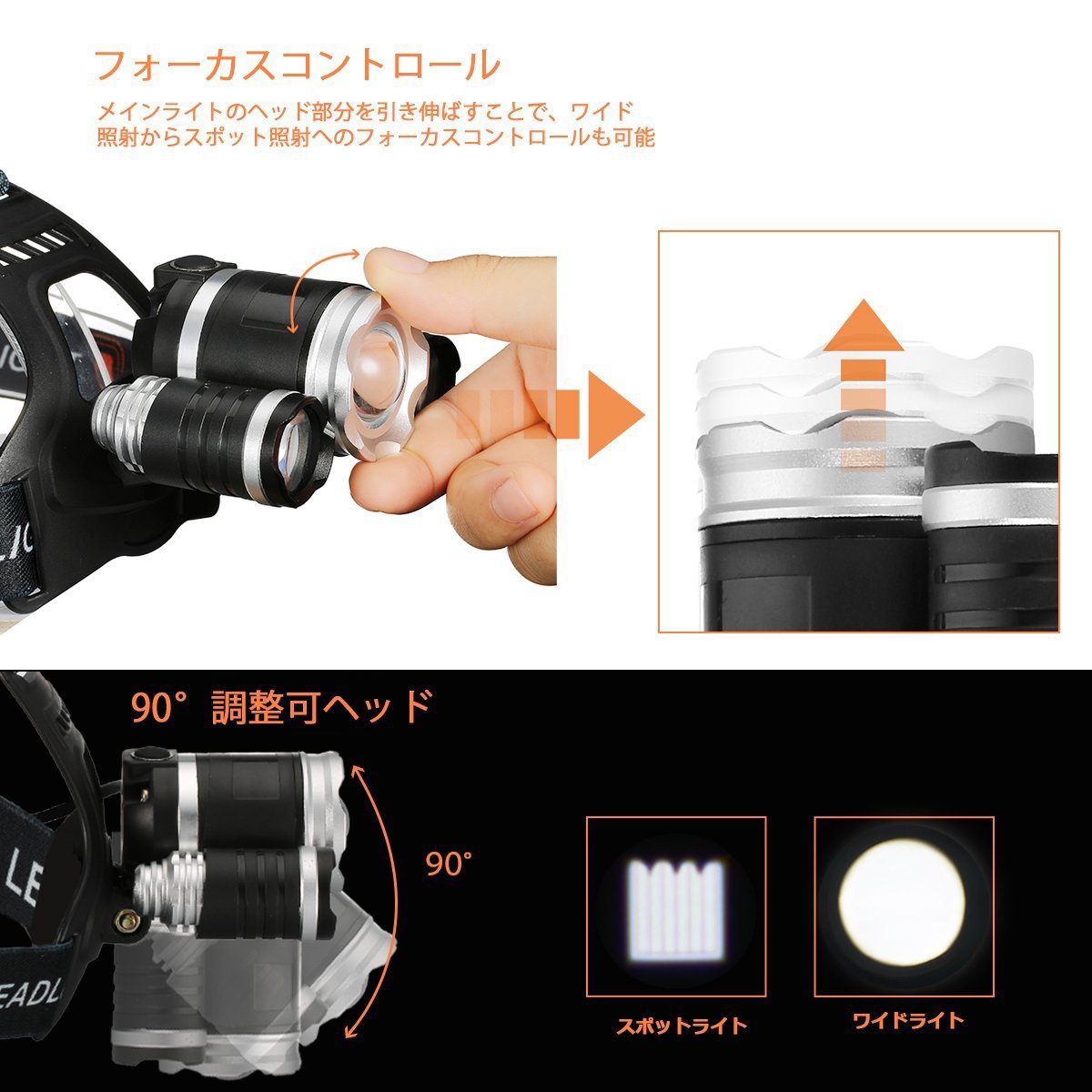 You can change the irradiation angle arbitrarily by moving the head part of the light according to the scene, such as when you want to light over the head or when you want to brighten your feet.