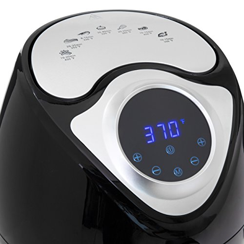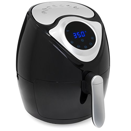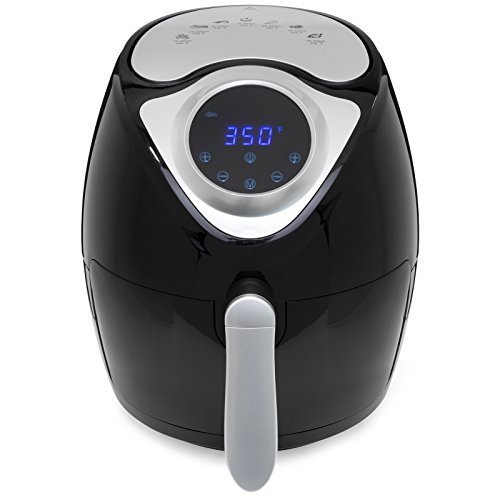 Tired of fatty, unhealthy food but love that deep-fried taste? This air fryer has got your next party covered, with rapid air fry technology that cooks your food the healthy way! Say goodbye to fatty oils and hello to delicious home-cooked fried food. Featuring many different cook settings for all types of tasty treats, this air fryer will have you asking for seconds! SPECIFICATIONS: Overall Dimensions: 12.5"(L) x 10.5"(W) x 13"(H); Capacity: 2.7qt; Weight: 9.7 lbs.; Color: Black; Material: Plastic, Stainless Steel; Some assembly required (with instructions)Feature
