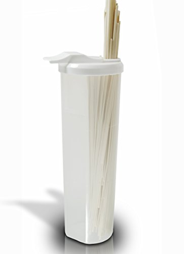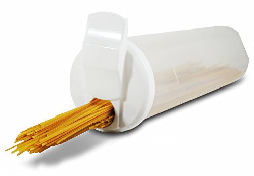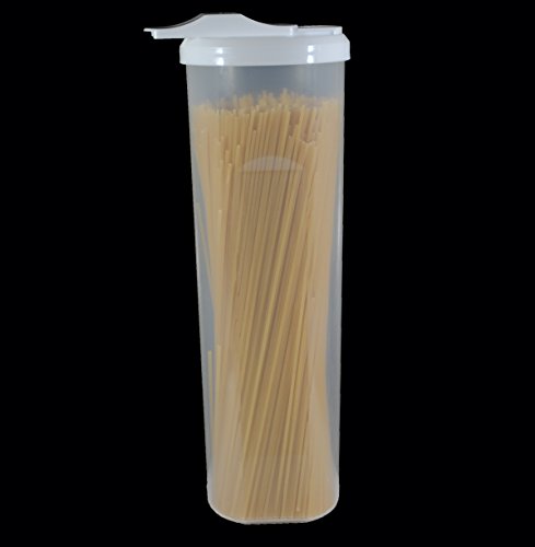 - Feature : Circular-shaped, easy to hold and pour, natural way to store pasta. / Family size container with 38.7 ounce capacity / Perfect for spaghetti pasta dry foods / Unique opening at the top that measure the bundle of pasta which give you the serving size or portion control. / Easy to Clean