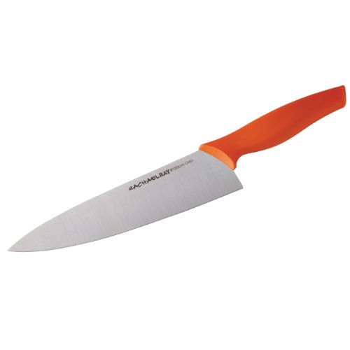 RACHAEL RAY CUTLERY 8-INCH JAPANESE STAINLESS STEEL CHEF'S KNIFE WITH ORANGE HANDLE AND SHEATH