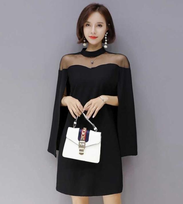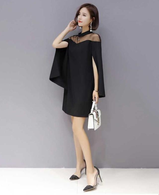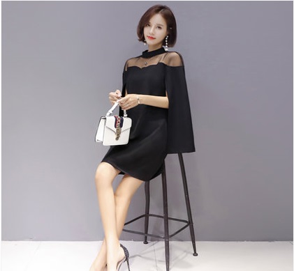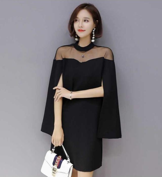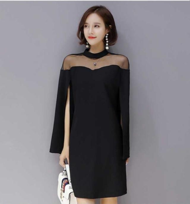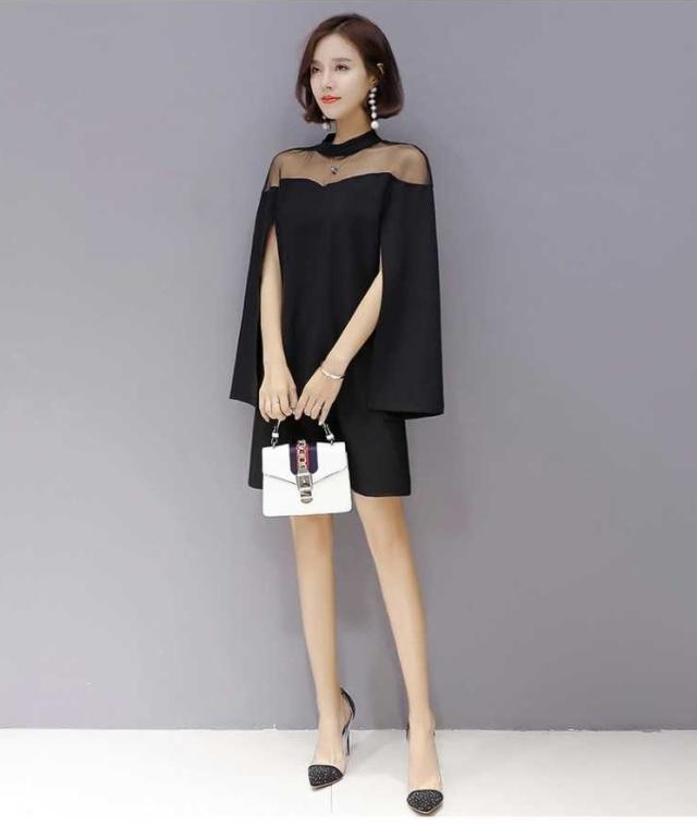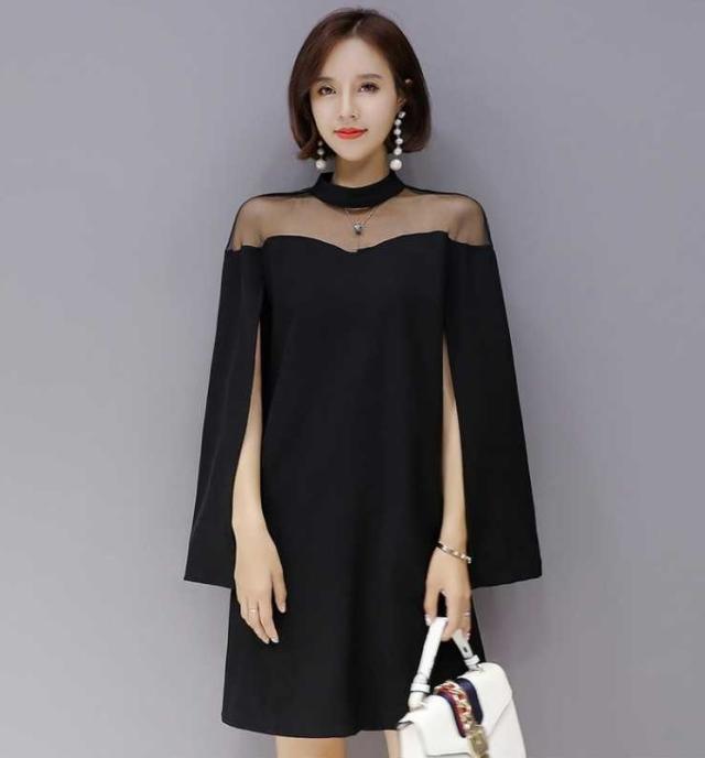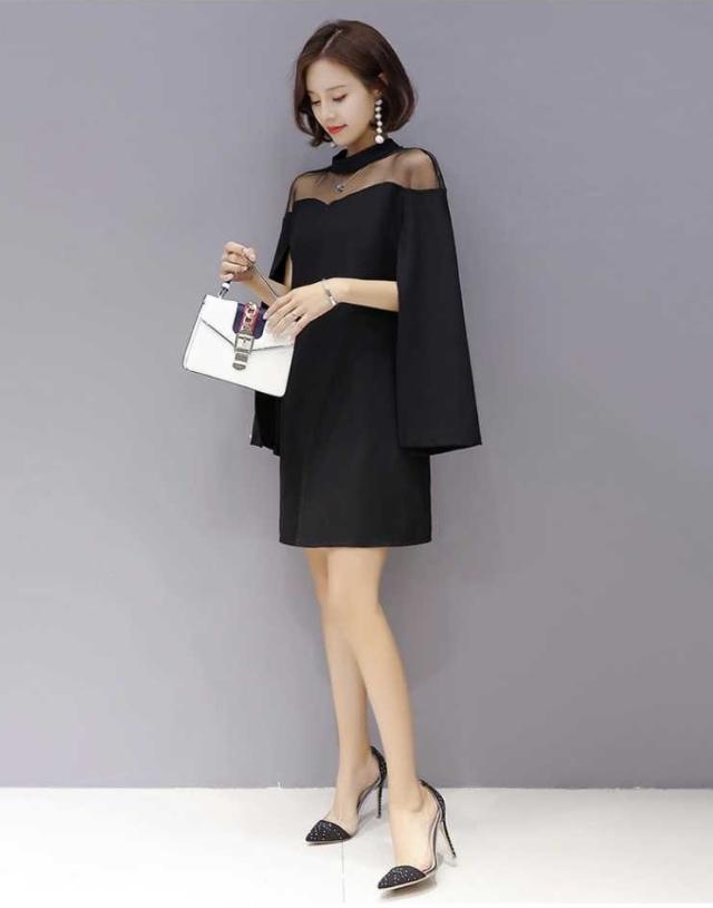 ケープ風 シンプル ドレス ワンピース 異素材ミックス