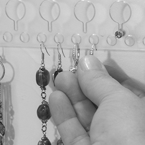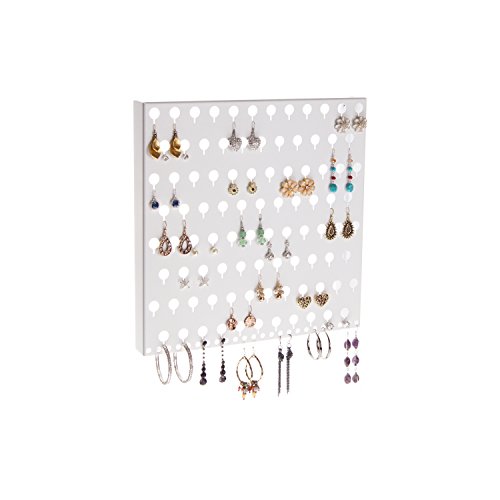 -. Feature : The Sariea Earring Angel by Angelynn's Jewelry Organizers is a metal wall mount earring holder organizer specifically designed to hold a variety of earrings, tiny studs to medium size post earrings and dangles. If you need a different type of jewelry organizer or a necklace holder visit us at www.amazon.com/shops/angelynns for all our jewelry storage solutions. / Product Dimensions: 12" tall x 12" wide x 1 ¼". 4 heavy-duty, easy to use Screw/Anchors are included. Individually handmade in the USA by a team of Skilled American Welders and Craftsmen in Frankfort, IL using US Carbon Steel no mystery metals and the very best quality baked on powder-coat finishes. Easy to use, durable and sturdy and they will last a lifetime with proper use. / Earring holder organizer storage rack capacity: Displays 58 pairs of earrings. If all of your earrings are 2" long x ½" wide 58 pair will fit. To use: Attach the post back (if there is one), leaving a small space on the post. Place the back through the keyhole and slide down into the slot. It's that easy! If there is no post back, just hang them, truly trouble free. A wonderful way to keep your earrings up and out of harm's way, seen at a glance and tangle free. / A clever, simple, beautiful way to organize your earrings. This solves the problem of trying to remember where certain earrings are hiding and cures the issue of jewelry clutter. By eliminating messy jewelry drop zones that are scattered about, you can simplify your life and can de-clutter jewelry boxes, armoires, chests and drawers and replace any non-user friendly jewelry organizers that you may be using. Many customers have used S hooks on the bottom row of round holes to hold necklaces too. / Our jewelry organizers hold a lot of jewelry for the space they occupy and are great space savers for closets, luxury dream closets, dressing rooms, dorm rooms, bedrooms and vanity areas. They are also used in retail stores and boutiques as jewelry displays. Loved by the girl next door, college students, movie stars and royalty around the world. Giving every piece of jewelry a safe haven to come home to is key to jewelry organization and are a fabulous gift.