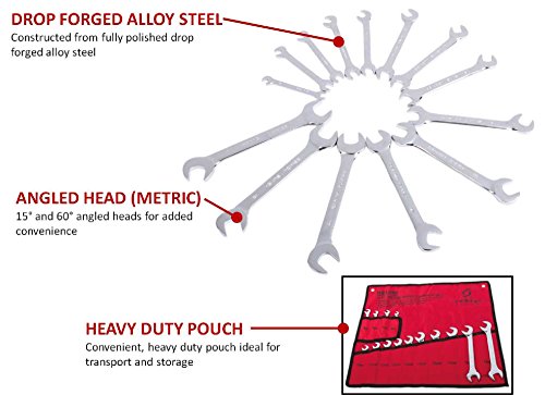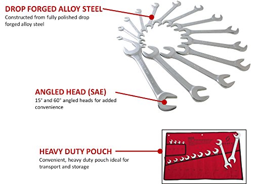 Sunex 9914 SAE Angled Wrench Set, 3/8-Inch - 1-1/4-Inch, 14-Piece