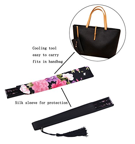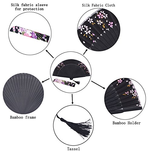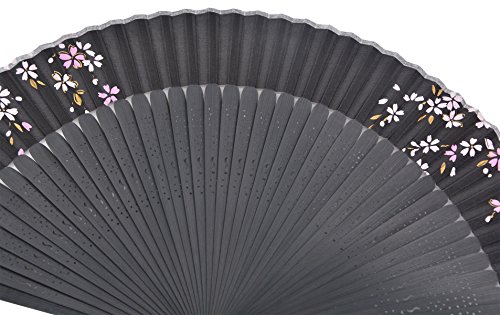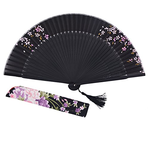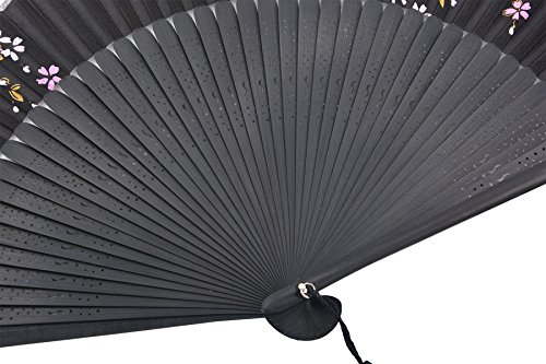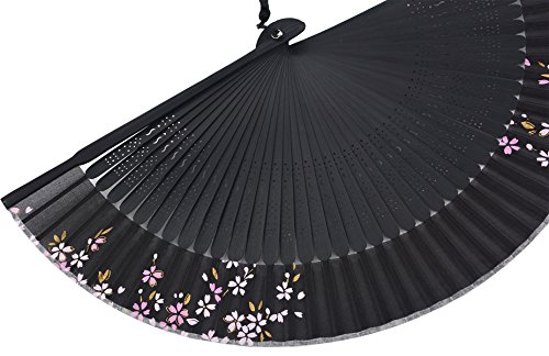 STHUAHE 8.66"(22cm) Womens Classical Hollow Carved Hand Painting Sakura Pattern Long Leg Folding Fans Kimono fan Wedding Fan Gift Fan,Suitable For Wedding Dancing Church Party Gifts (Black-C)