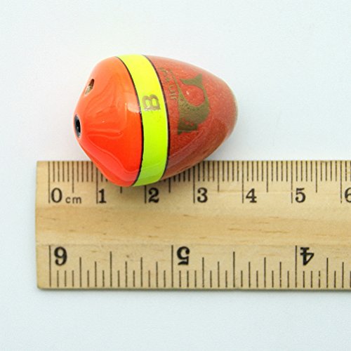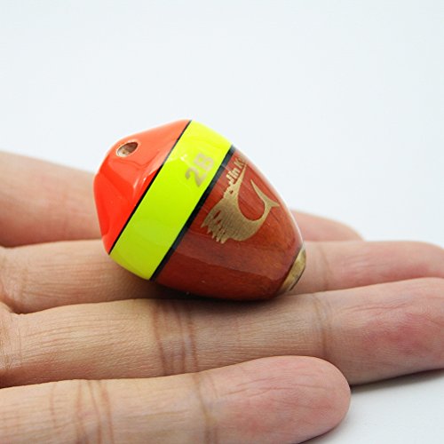 -. Feature : Made of high quality platane wood material, hard body, impact-resistant. / Good buoyancy and stability, durable rock fishing floats, coated with special smooth waterproof paint, not easy to crack. / Oval design, compact and lightweight, easy to carry when go fishing. / Unique shape and weighting automatically provide jigging action at any depth wind and wave action, reach farther and fish deeper from the bank / With the hole for glow stick, which is convenient for fishing at night.
