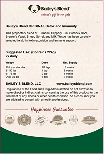 -. Title : Bailey's Blend Intensive Care Formula. Organic Herbal Supplement for Dogs. 224 grams - Aids in Preventing Cancer, Arthritis, Cushing Disease, Obesity, & more!