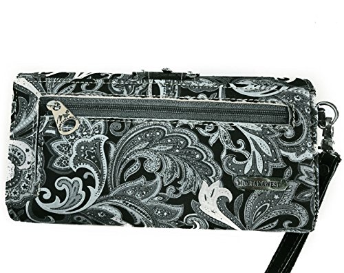 -. Feature : Brand:Montana West, Material:Faux Leather, Treated Fabric / Style:Wristlet, Features:Organizer / Color:Black, Theme:Paisley