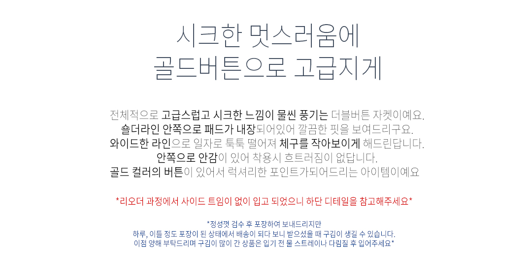 ※ 리오더 과정에서 사이드 트임이 없이 입고 되었으니 디테일을 참고해주세요.