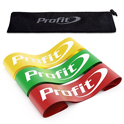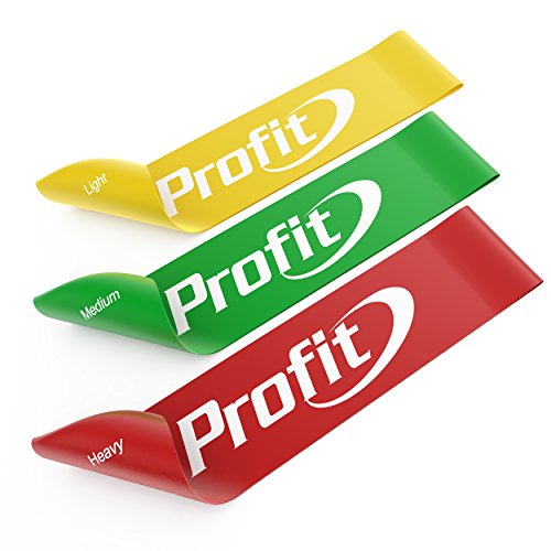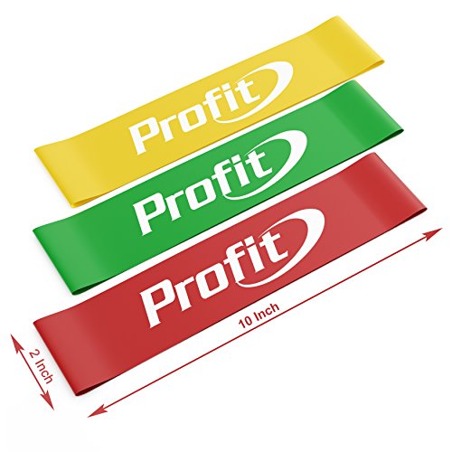 - Set of three 10" x 2" high quality latex ProFit Fitness loop bands