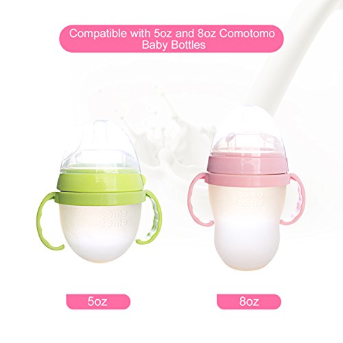 -. Feature : Baby Bottle Handle suitable for all comotomo Bottles,the average handle size is compatible with all 5oz and 8oz Comotomo Baby Bottles / Constructed of 100% Baby Safe Materials Premium food-grade PP materials,BPA Free,Phthalate Free,Latex Free,Lead free and max temperature:120°C,no need worry about any harms / Innovative Anti-Slip Design and Soft-Touch Experience,baby won't feel hands hurting to use this baby bottle handle,It's easy for baby to learn gripping and self-dependent feeding / Baby Bottle Cap protective and dustproof Feature-keeps the nipple of an assembled,filled bottle clean until your little one is ready to feed.It is a suitable cap to replace the missing one with your Comotomo bottle / Baby bottles grip perfect for Leak-Proof Mixing and On-The-Go Feedings,the flange simplifies the adaptation with the collar and keeps it in the correct position. Put this cap on, you can shake the bottle to mix formula and have the milk ready to go