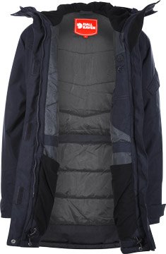 Studio : Fjallraven Publisher : Fjallraven Binding : Apparel Product Description Long, large women's parka that keeps your rear and thighs warm. The perfect winter garment for changing weather conditions, it protects against the wind and rain at the same time as the Supreme Micro Loft padding keeps you warm in really low temperatures. Fixed hood with soft fleece lining and detachable artificial fur that keeps snow storms away from your face. Many practical pockets, including spacious bellow pockets and hand-warming pockets at the hem, two zippered breast pockets and a pocket for a media player on the sleeve. On the inside, there are two mesh pockets, a telephone pocket with an opening for ear phones and a safety pocket. Drawcord at the waist and hem and long, two-way zipper with protective flap. Velcro adjustments for the sleeve cuffs. 0