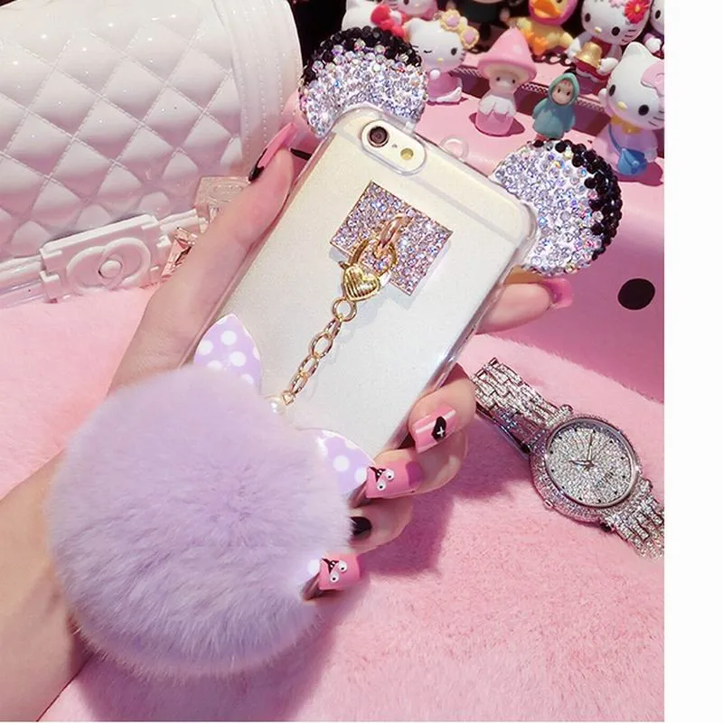 Style 1:Fashion 3D Bling Glitter Crystal Diamond Cute Mouse Head Ears Case