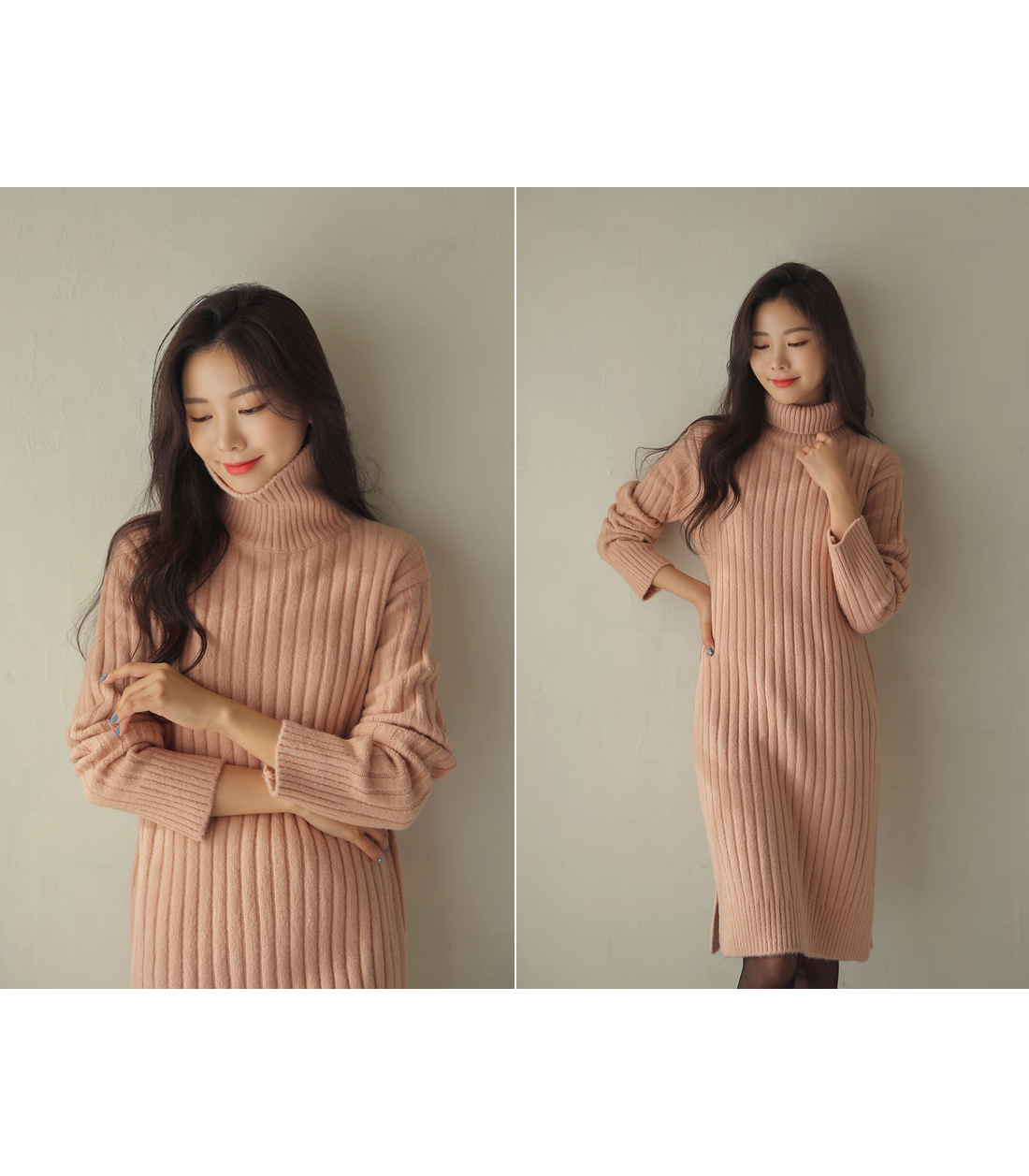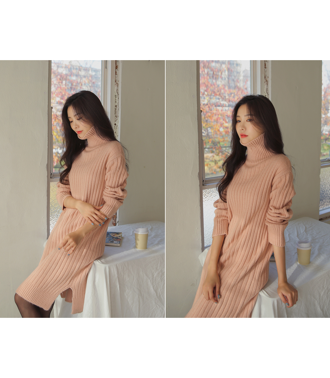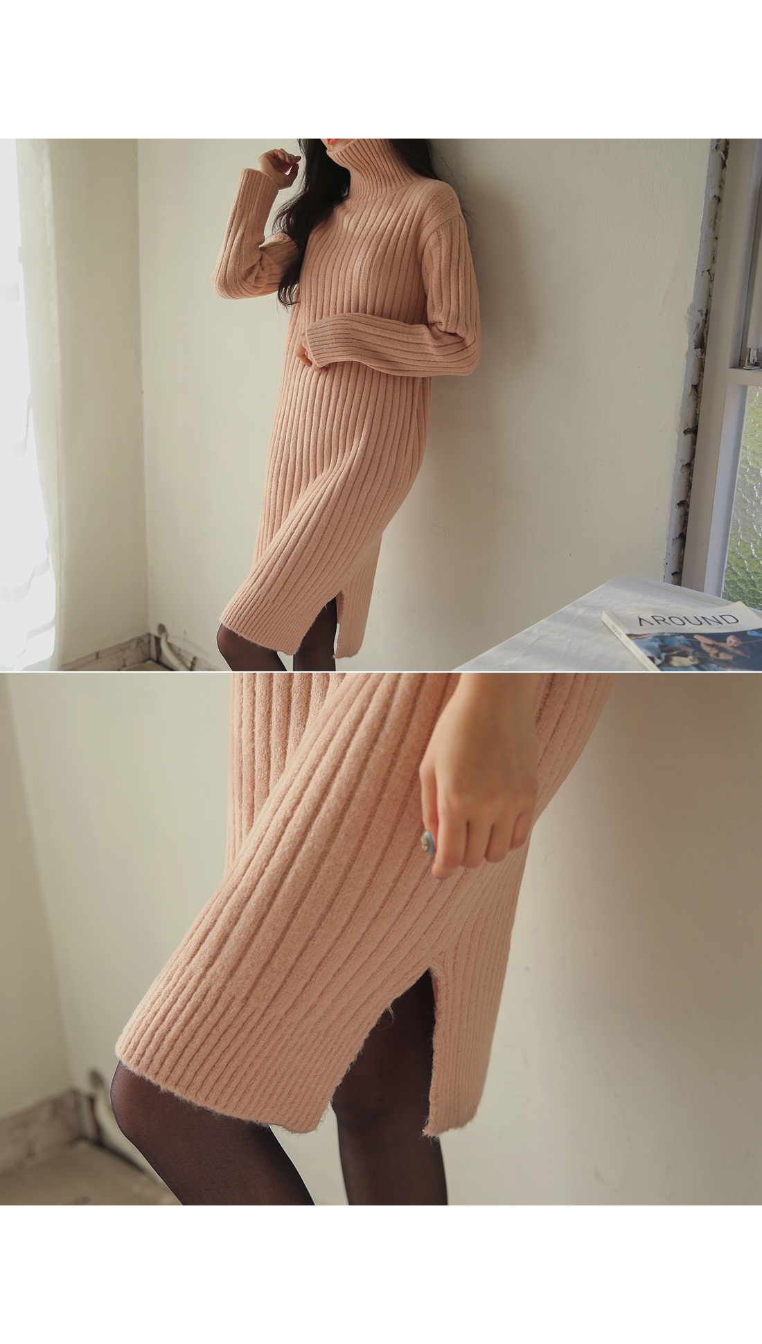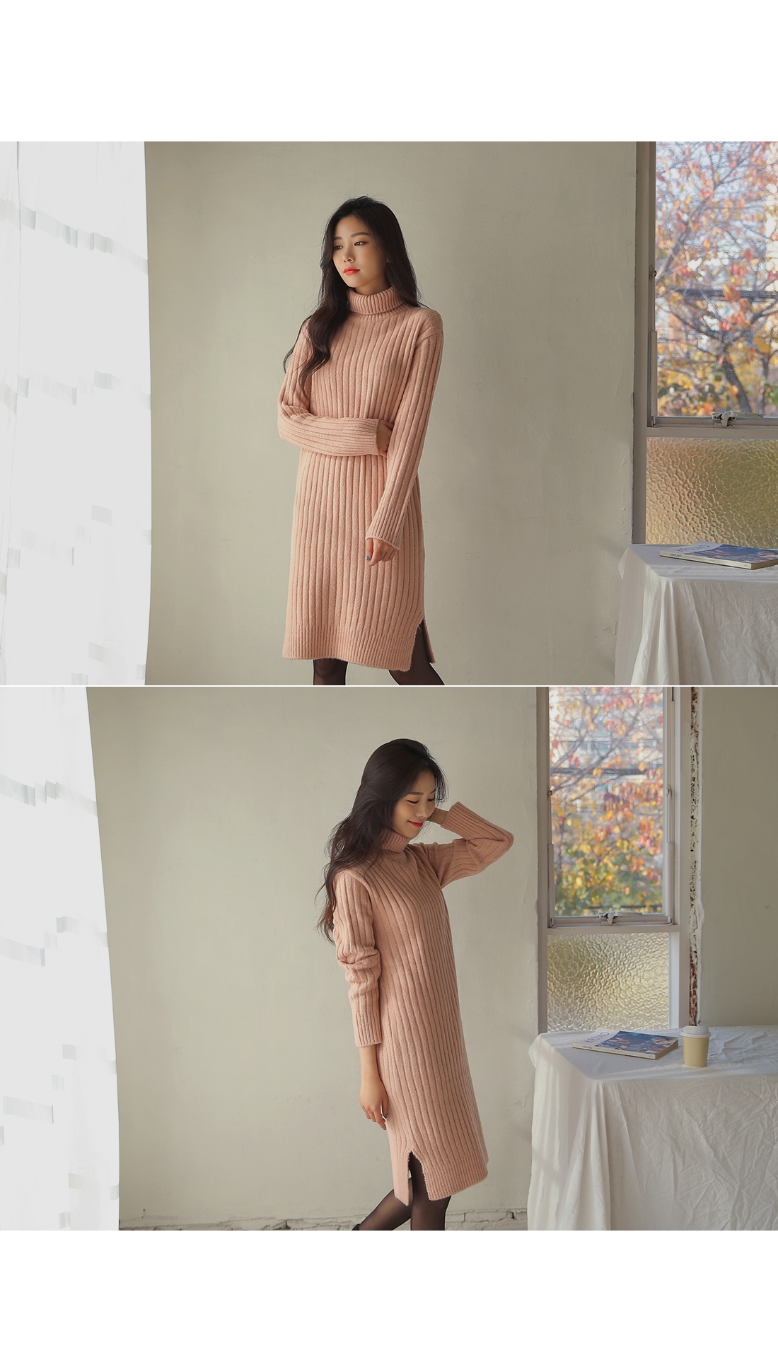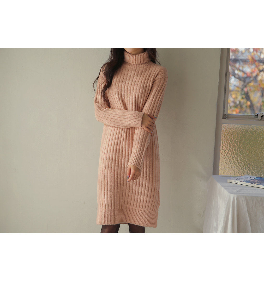 폭신하고 따뜻한 착용감의 니트폴라원피스에요~