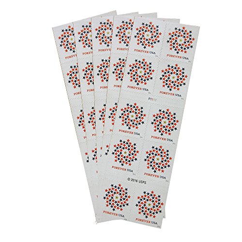 Patriotic Spiral Book of 10 Forever First Class USPS Stamps USA Stars Red & Blue (5 Books of 10 Stamps)