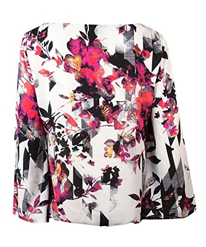 Product DescriptionTop features full lining, round neckline, bell sleeves, printed crepe overlay, bubble elastic hem, and pullover style.0