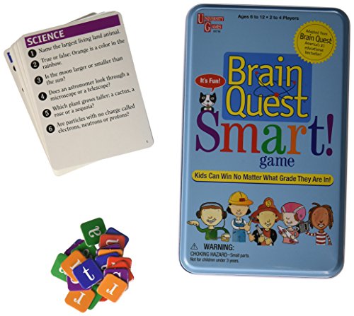 -. Feature : The Brain Quest Smart Travel Card Game makes learning fun, as kids race to answer age-approP.R.Iate questions / The winner is the first to spell SMART by correctly answering a question in each category: Science, Math, Art, Reading and The World / Players have a chance to answer questions at their own grade level / For 2 - 4 players ages 6 - 13, the game comes in a handy travel tin for take-anywhere fun / University Games offers you and your family creative games that are easy to learn and fun to play