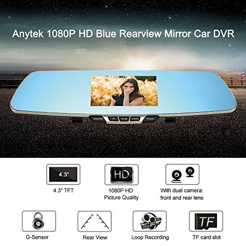 -. Title : Anytek T6 1080P HD Dual-lens Car Camera, Rear View Mirror, Car Video Recorder DVR Dash Camcorder with 4.3 Inches TFT Display