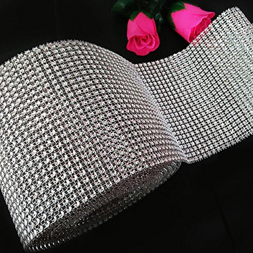 - Feature : 30 feet roll of rhinestone wrap, perfect for weddings, themed parties, bridal and baby showers, graduations, anniversaries, holidays, and seasonal events! / The mesh easily bends to fit around all shapes and sizes. Dimensions: 4.5"W x 30ft / Perfect for wedding bouquets, tables, candles, vases, cake stands, chairs and other special event decor to provide a truly platinum look. / Please note: Diamond Crystal Wrap does NOT include actual diamonds, crystals, or rhinestones. / Cut to the length you need with simple household scissors.