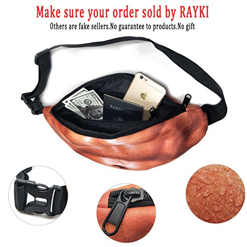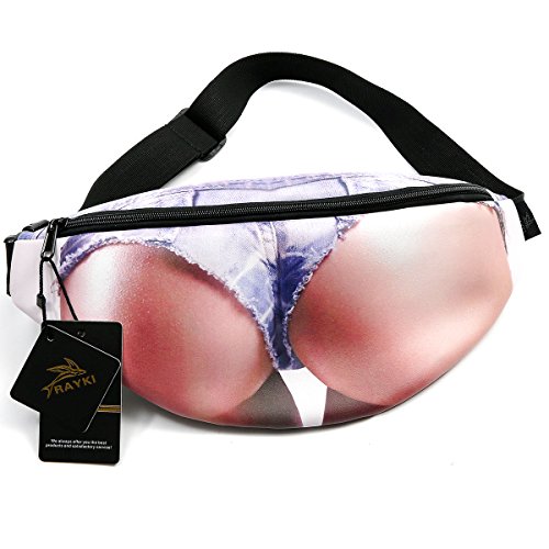 Studio : RAYKI Publisher : RAYKI Product Description Brand:RAYKI The Specification of this Fanny Pack: ?MATERIAL:PU and canvas,Adjustable Belt ?CLOSURE TYPE:zipper ?WAIST PACK SIZE:38cm (15.4") * 17cm(7") ?WAIST RANGE:28"- 46" ?WEIGHT:about 110g(0.26lb) The Features of this Fanny Pack: 1,3D print,Funny Spoof Gift. 2,AMPLE STORAGE SPACE: Main compartment provides independent protection for your phones from screen scratches, cash, key and watch. It is easily for outdoor sports with no worries. 3,Easy to put on and take off with quick release buckle. 4, Multi-functional waist pack,perfect companion for running,hiking,walking,jogging,cycling,travelling or any activity where you want to have your hands free with carrying a purse or backpack. ★★TIPS:If you have some problem with the funny print waist packs,please contact with us.We'll try our best to help you. 0
