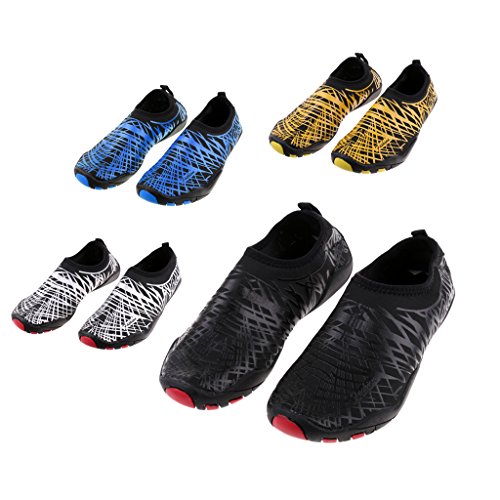 Description: - Rubber soles, with a really comfortable and thick foam arch-support insert - Anti-slip outsole and durable,super lightweight and flexible - Fashion, Quick-dry, super comfortable during water sports. - Breathable and smooth fabrics with fine stretch on uppers - Suitable for indoor football, fitness, yoga, beach sports and cycling exercise. Outdoor footwear for swimming, diving, boating. Specification: - Material: Rubber - CH Size: 35-36 - US Size: 5.0-5.5 - Dimensions: Approx. 23cmx9cm/9x3.5inch - CH Size: 37-38 - US Size: 6.0-6.5 - Dimensions: Approx. 24.5cmx10cm/9.6x3.9inch - CH Size: 39-40 - US Size: 7.0-7.5 - Dimensions: Approx. 25.5cmx10cm/10x3.9inch - CH Size: 41-42 - US Size: 8.5-9.0 - Dimensions: Approx. 27cmx10.5cm/10.6x4.1inch - CH Size: 43-44 - US Size: 9.5-10 - Dimensions: Approx. 28cmx11cm/11x4.3inch - Color: Blue, Yellow, Silver, Black Package Includes: 1 Pair Swim Shoes 0 |