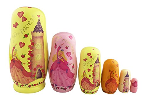 -. Title : Cute Dancing Blonde P.R.Incess Heart Rose Castle Pattern Wooden Handmade Russian Nesting Dolls Matryoshka Dolls Set 6 Pieces For Kids Little Girl Toy Birthday Christmas Gift Home Kids Room Decoration