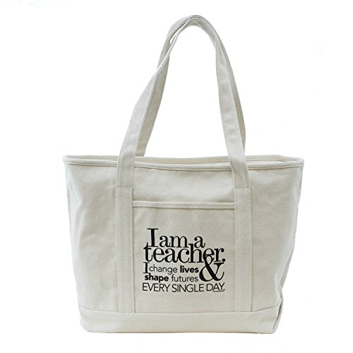 -. Brand : Teacher Peach -. Department : unisex-adult -. Feature : In sturdy 24 oz. cotton canvas material with a bottom gusset, this tote will last many summers. / Measuring 20.5 x13 x7 inches, this bag will fit your favorite book, a healthy snack, and other warm weather essentials. / Reinforced straps and a handy front pocket make this bag a lasting and useful gift for your favorite teacher. / This attractive tote comes in black or red trim. -. ProductGroup : Apparel -. ProductTypeName : LAGE -. Title : Teacher Peach I Am a Teacher Canvas Big Boat Tote