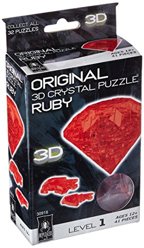 -. Binding : Toy -. Brand : Bepuzzled -. EAN : 0023332309160 -. Feature : The Ruby 3D Crystal Puzzle from BePuzzled is a sleek, translucent puzzle with 41 unique interlocking pieces / Take puzzling to a whole new dimension with this unusual crystal puzzle / Enjoyable to work on, challenging to complete, fun to display / This 3D puzzle has a difficulty level of 1 and is fun for puzzlers age 12 and up / Approximate assembled size = 2-3/4" x 2-3/4" x 2" (without stand) -. IsAdultProduct : 0 -. ItemPartNumber : 30916 -. Label : University Games -. Manufacturer : University Games -. Model : 30916 -. MPN : 30916 -. PackageQuantity : 1 -. PartNumber : 30916 -. ProductGroup : Toy -. ProductTypeName : TOYS_AND_GAMES -. Publisher : University Games -. Studio : University Games -. Title : Original 3D Crystal Puzzle - Ruby -. UPC : 023332309160 -. Warranty : No Warranty