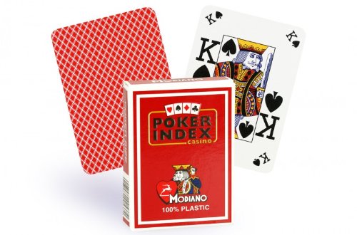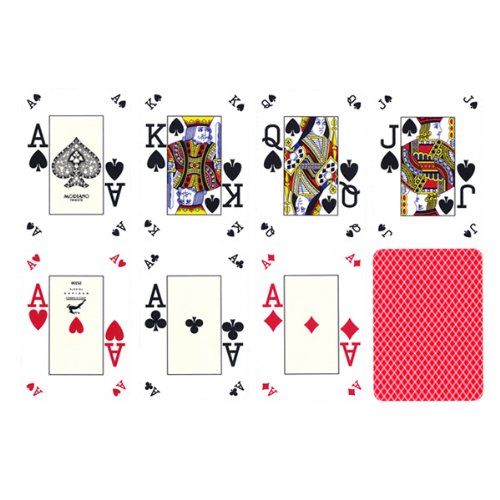 Modiano Italian Poker Game Playing Cards - RED Poker Index - Single Card Deck - 100% Plastic Made in Italy