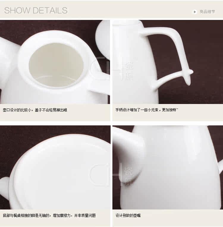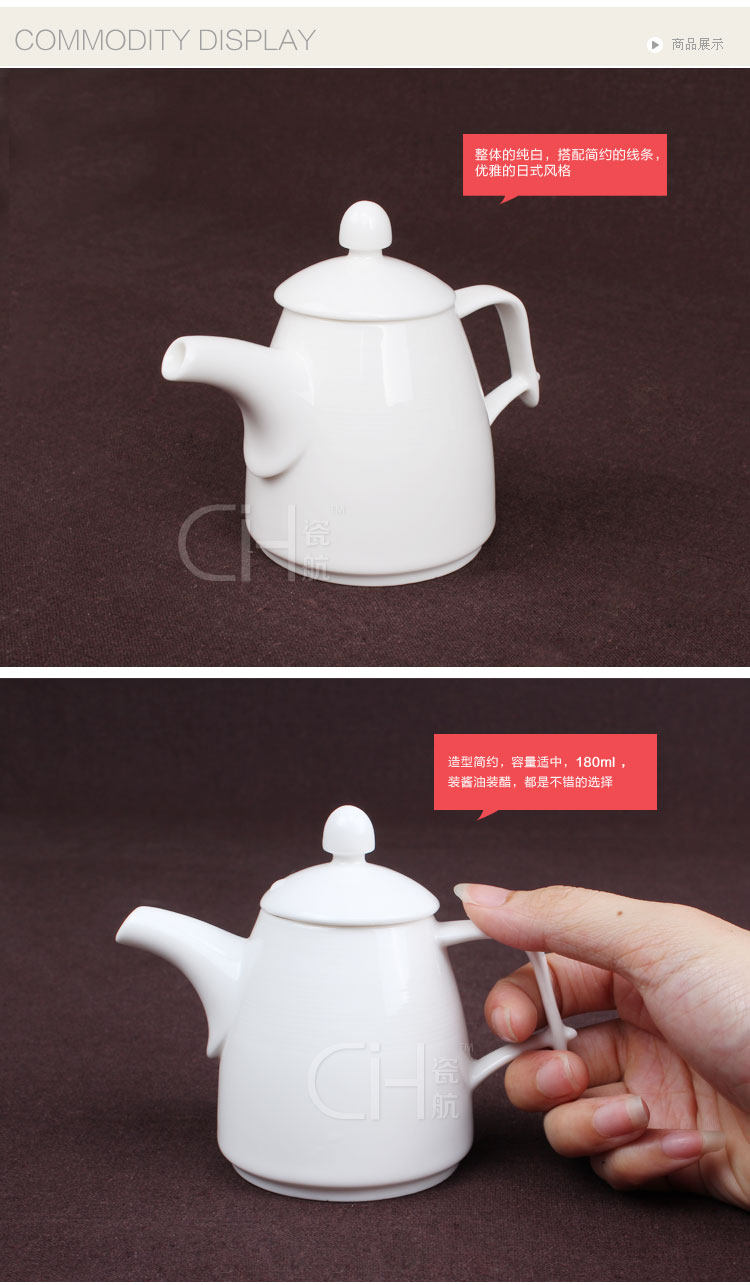 细纹醋壶纯白骨瓷调味壶醋壶酱油壶油壶带手把餐厅调味瓶罐180ml