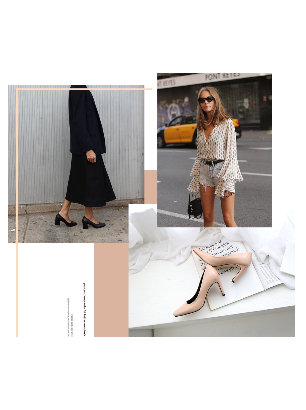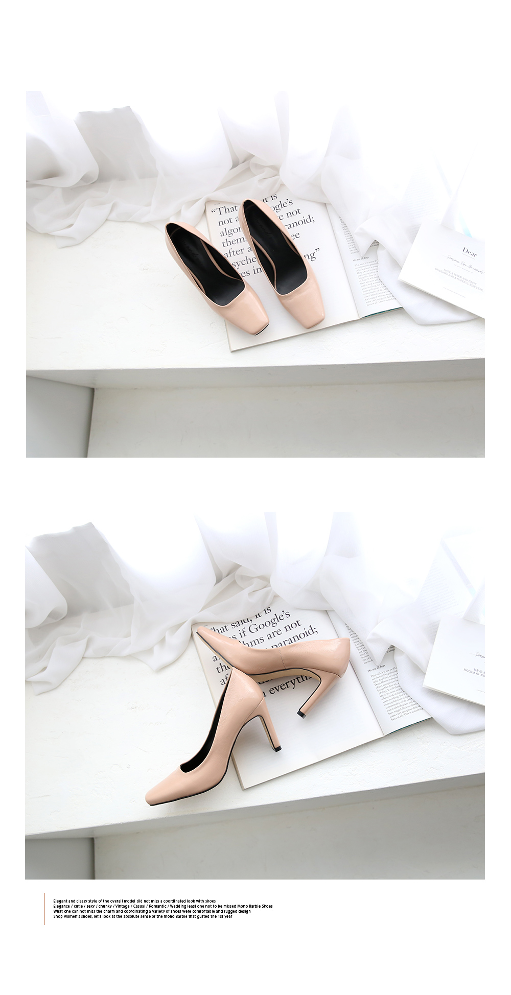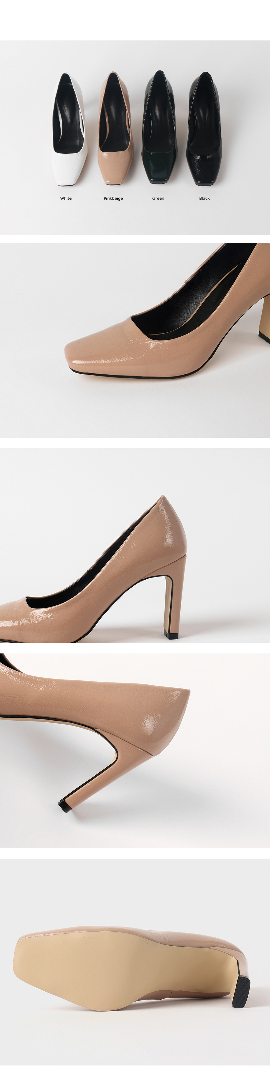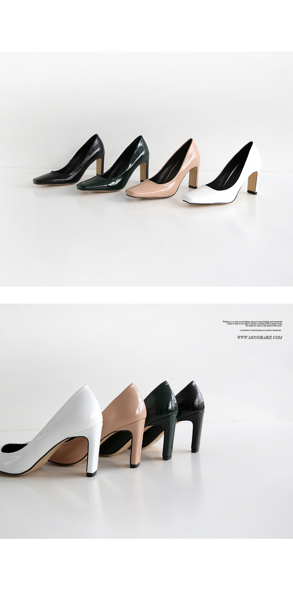 Point square toe pumps 스퀘어진 토가 클래시한 펌프스입니다. 광택감이 느껴지는 텍스쳐와 형태감있는 굽으로 굉장히 멋스럽게 착화되고 베이직컬러로만
