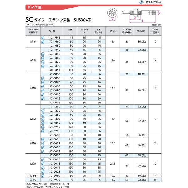 ●ねじの呼び:M10 全長:70mm ねじ長さ:25mm 穿孔径:10.5mm アンカー 埋込み長さ:40mm 穿孔深さ:50mm以上 最大取付物厚:16mm