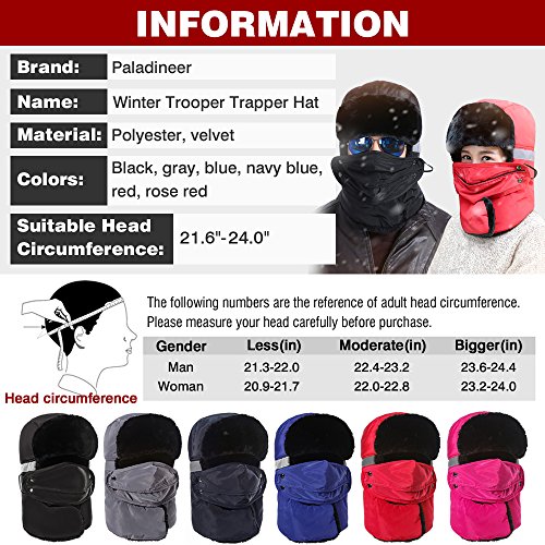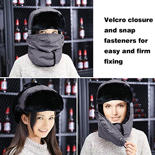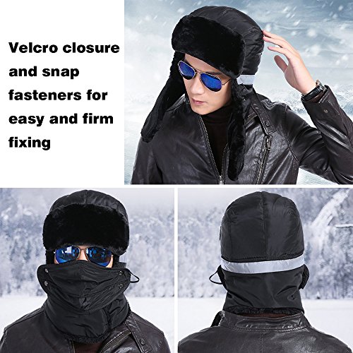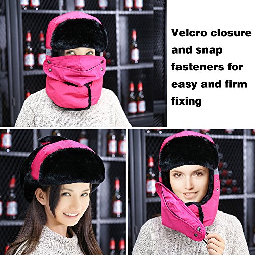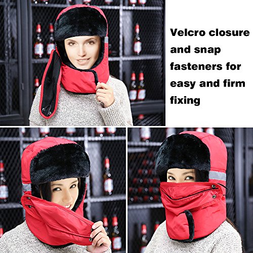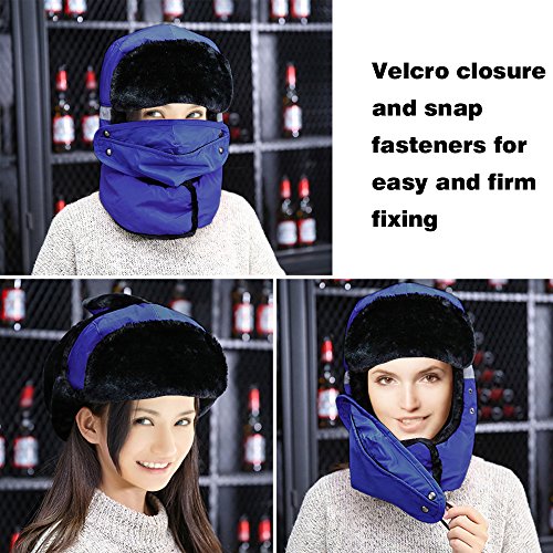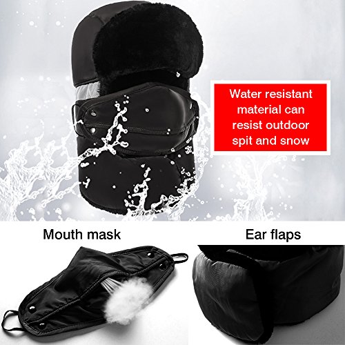 Product Configuration: *The Velcro and snap fasteners keep it in right place without moving up and down when meeting strong wind. *Wide and thick enough to cover your face, nose, mouth, ears and even eyebrows. *Breathable mouth mask with opening can fight odor, fog and coldness, offering the maximum level of comfort. *This hat will provide you with the warmth that you need in cold weather. *It is suitable for men and women, and also for all kinds of winter wear. *Very durable in winter for hunters, trappers or any other outdoors activities, like skiing and snowboard. Warm Tips: *Please refer to the sizing information before purchase. *Please allow the slight smell in the course of packing shipping and it will disappear soon. *Please allow a little size deviation because of manual measurement. *It is inevitable that there is little color difference due to different cameras or light environment.