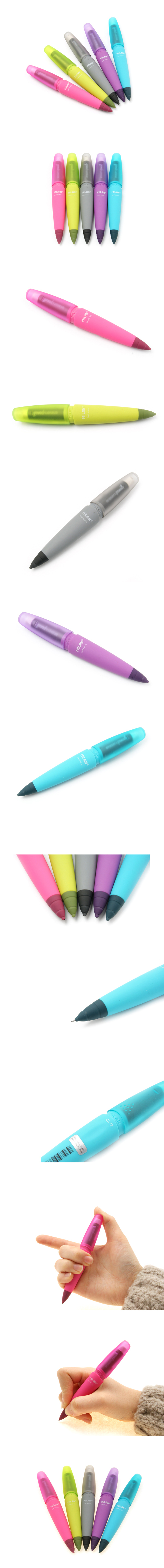 캡슐모양으로 생긴 타원형 바디에 샤프에는 보기드문 대용량 지우개가 내장되어있다.