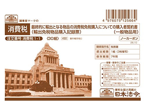Japanese laws consumption tax 1-1 / finally export to become purchaser oath about the consumption tax exemption purchase of goods (exports duty-free goods purchase record vote) (for general goods) 10