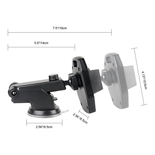 - Super Suction Design: Super strong suction cup with sticky gel car stand can adhere to windshield, dashboard, and other smooth or textured surface, which provide extra stability and security for safe driving.