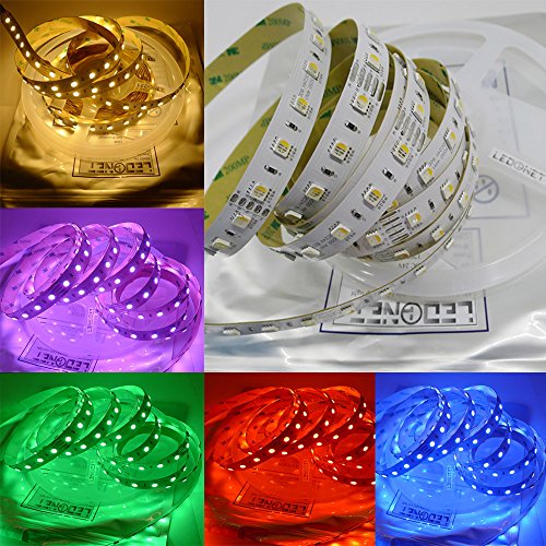 LEDENET RGBWW LED Strip 4 Colors in 1 SMD 5050 RGB & Warm White Flex Fairy String Light 5M 300LEDs 24 Volt Tape Lighting (RGBWW Non-waterproof)