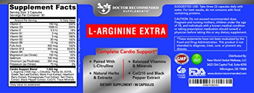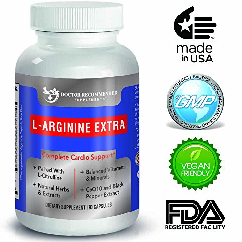 -. Binding : Health and Beauty -. Brand : Doctor Recommended -. EAN : 0635797687235 -. Feature : BEST QUALITY L ARGININE Supports Improved Athletic Performance and Boosted Immune System / COMBINED WITH L CITRULLINE & VARIOUS OTHER NUTRIENTS Supports Maximum Cardio Health Support as well as Kidneys / 100% VEGETARIAN SUPPLEMENT MADE IN A STRICT cGMP AND FDA CERTIFIED FACILITY Supports Nitric Oxide (NO) Production, A Powerful Neurotransmitter That Supports Blood Vessels to Relax & Improve Circulation / MADE WITH HIGHEST GRADE INGREDIENTS So You Can Get The Best Out Of Every Bottle You Purchase / MADE IN USA & COMES WITH 100% MONEY-BACK GUARANTEE -. IsAdultProduct : 0 -. Label : Norax Supplements -. LegalDisclaimer : These statements have not been evaluated by the Food and Drug Administration. This product is not intended to diagnose, treat, cure, or prevent any disease -. Manufacturer : Norax Supplements -. PackageQuantity : 90 -. ProductGroup : Health and Beauty -. ProductTypeName : HEALTH_PERSONAL_CARE -. Publisher : Norax Supplements -. Studio : Norax Supplements -. Title : High Quality L-Arginine 1000 MG Nitric Oxide Formula by Doctor Recommended Supplements - Supports Cardio Health, Nitric Oxide Production , Stamina & More - 1 Month Supply -. UPC : 635797687235