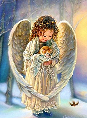 5D DIY Diamond Painting by Number Kits, Full Drill Embroidery Painting Wall Sticker for Wall Decor - Girl with A Cat (12 x 16inch)
