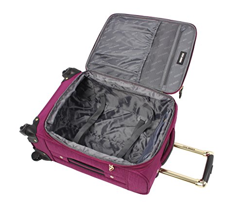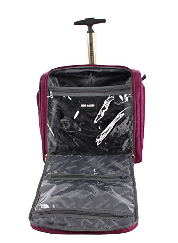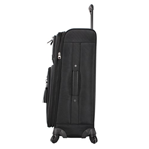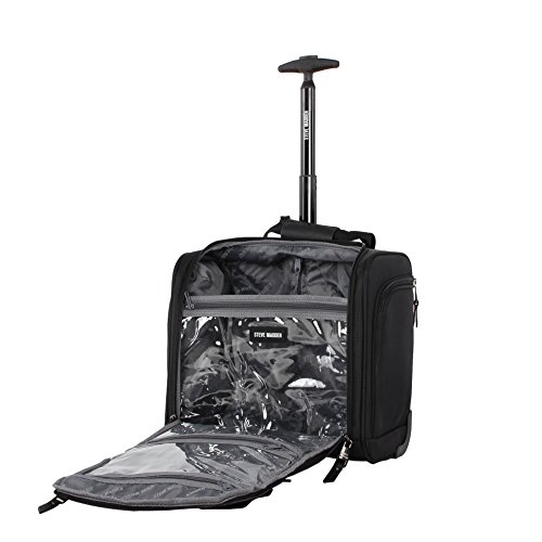Steven Madden Luggage Soft Side Luggage delivers great durability together with a fashionable design. It is made from polyester fabric to provide your belongs with maximized protection. The use of 360 degree spinner wheels and telescopic push button handle system enables high stability over a variety of surfaces especially crowded airport. This sharp looking piece with Steve Madden signature lining will keep you traveling in style. The dimensions with wheels and handle: Carry-on: 21.5 X 14 X 9 inches Large: 29.5 X 18.2 X 12.8 inches Under Seat Bag: 15 X 9 X 14 inches The dimensions without wheels and handle: Carry-on: 20 X 14 X 8 inches Large: 28 X 18 X 10.5 inches Under Seat Bag: 15 X 9 X 14 inches The carry-on has been extensively tested to fit the overhead cabin requirements for most airlines The under seat bag has been extensively tested to fit under the seat of most airlines. Internal storage capacity Carry-on: 35 Liters Large: 100 Liters Under Seat Bag: 25 Liters Additional storage is available by expanding the suitcase Approximate weight of the luggage Carry-on: 7.8 lbs Large: 10.1 lbs Under Seat Bag: 5 lbs This luggage is covered by a 5 year manufacturer's warranty. 0 |