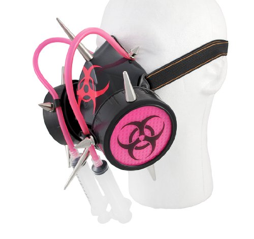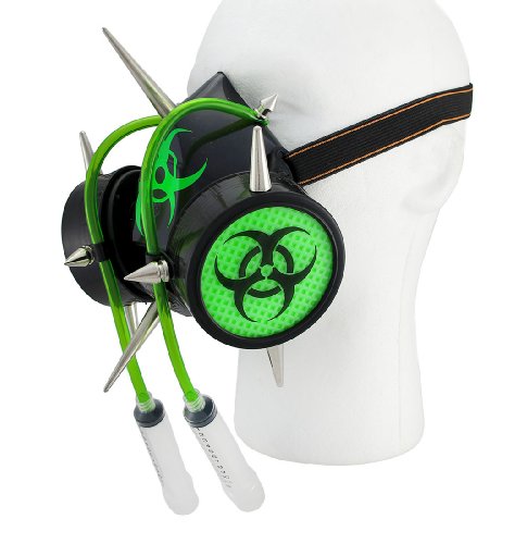 -. Title : Black/Neon Cyberpunk Respirator Mask w/ Metal Spikes Biohazard