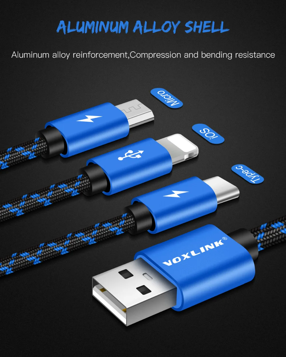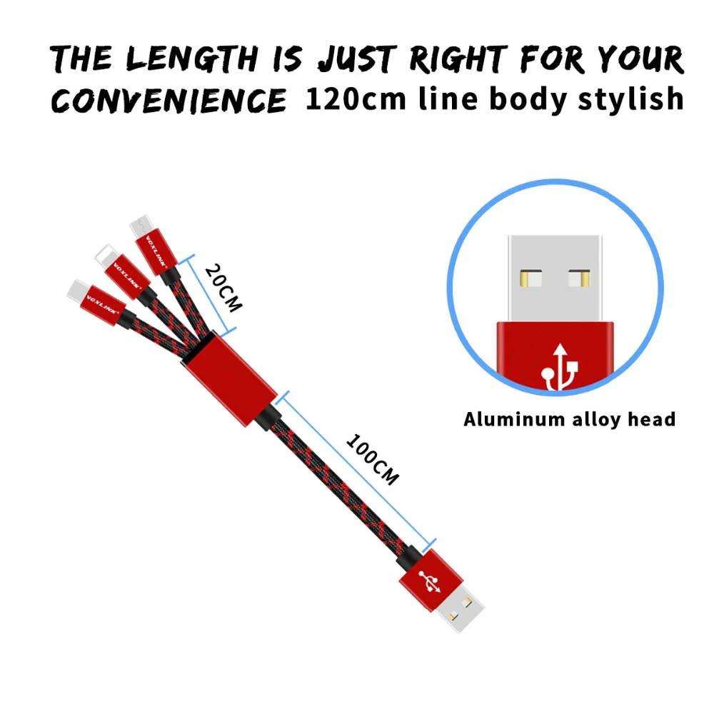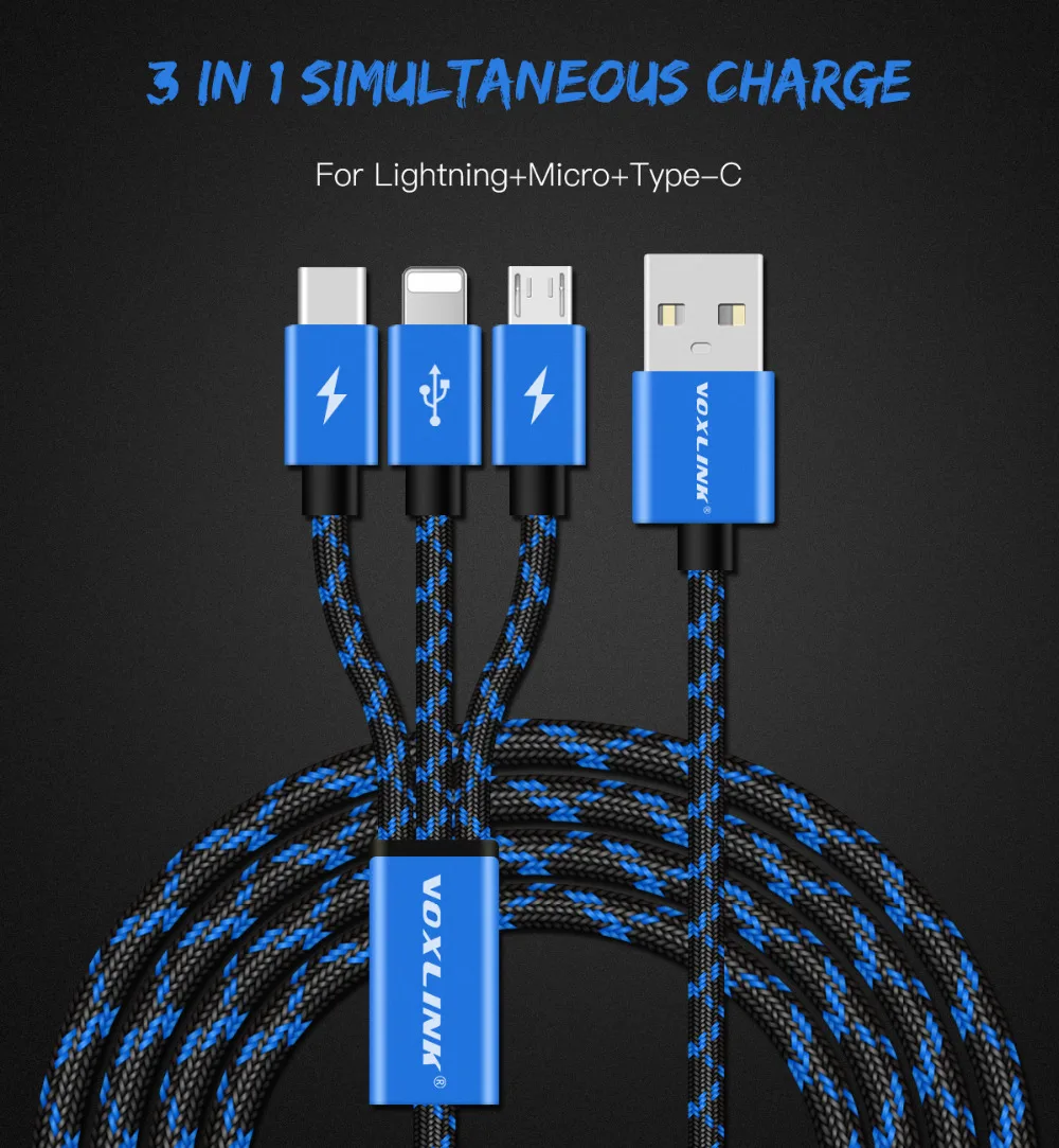 3 IN 1 Type A:Micro+Type-c+8pin 3 IN 1 USB Cable
