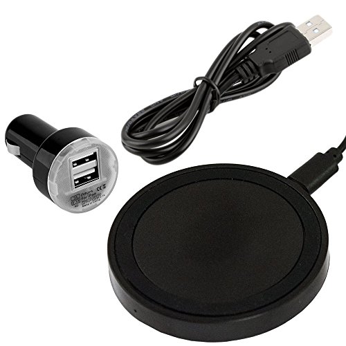 -. Feature : This combo gives you a wireless charging pad for your home or office as well as a 2 port USB car charger and cable. / Plug the QI wireless pad cable into USB socket and place your phone on the charger. Will charge with the majority of cases on phones. Features a red power light on front of the pad. Check phone settings to enable. / Dual USB port car charger plugs into the 12v cigarette lighter plug. Top plug 1A. Bottom 2.1A. 5 Volt Output. / Comes with a 36" USB cable to use in your auto with the new car charger.