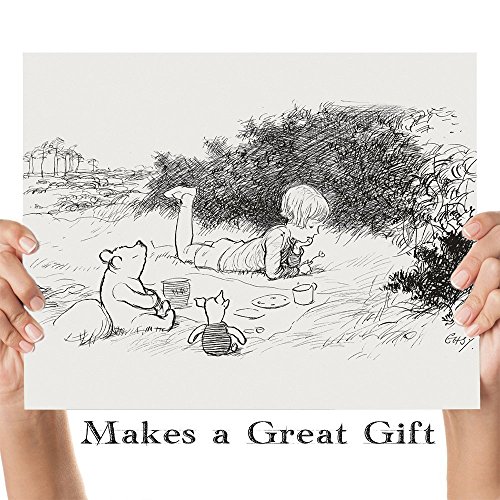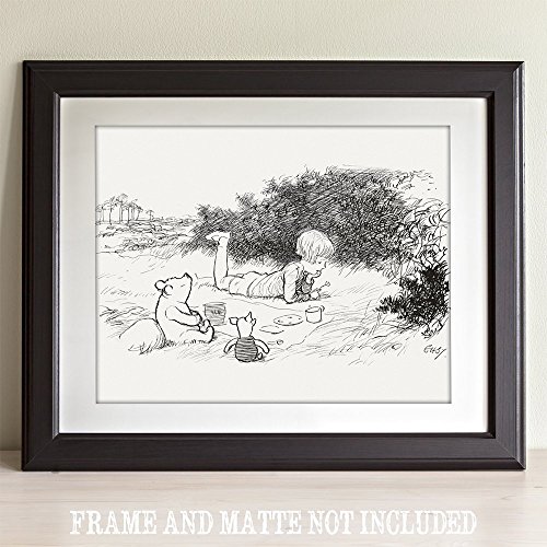 Picnic - Winnie the Pooh and Christopher Robin 11x14 Unframed Nursery Art Print