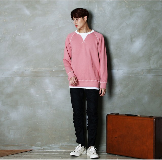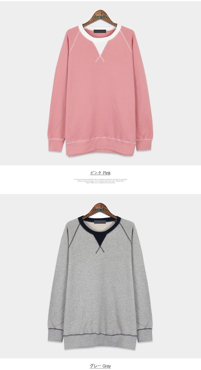ネック部分の切り替え色とステッチラインで一枚でも様になる一着。