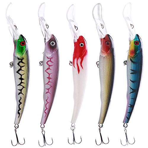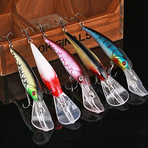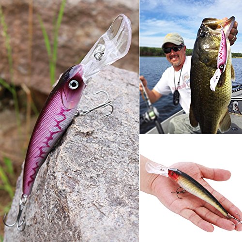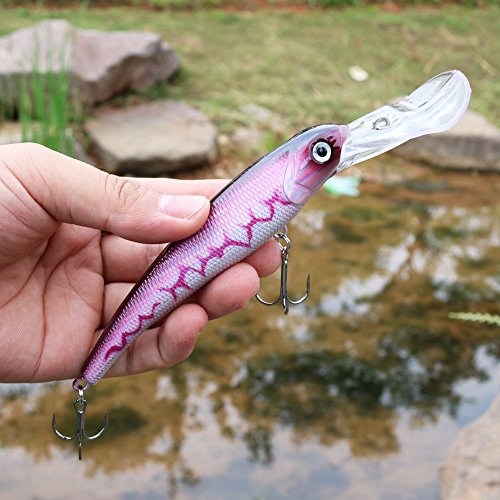 10PCS LURES:Weight: 0.95oz; Length: 6.5in, Hook Size: 4# ;3D lifelike eyes, High resolution body detail, 2strong and sharp treble hooks.
