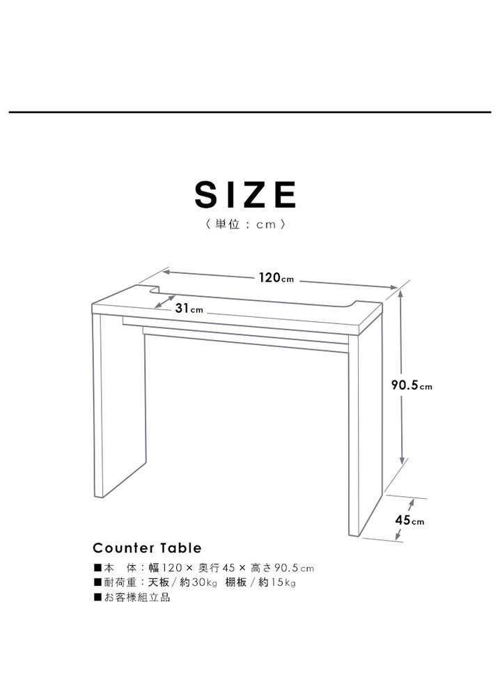 ●耐荷重 天板:30kg 棚板:15kg