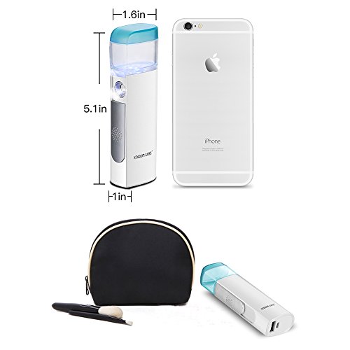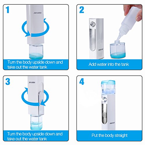 - 4.Portable Handy Design with 22ml Large Capacity Water Tank: Suit for refine makeup outdoors. Small size for handy, enough to just throw in your purse, pocket, handbag and etc. Best for personal use, or as a gift. Enjoy facial sauna at office, on flights, outdoor, traveling etc, anytime you want. Sliding down the slip cover gently and micro-sized particles stream will be released immediately for skin care. And the 22 ML water tank can be used with large amount of mist.