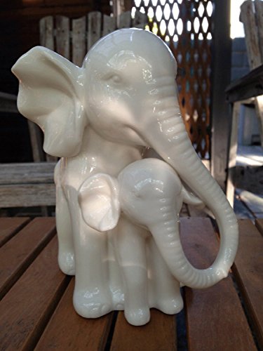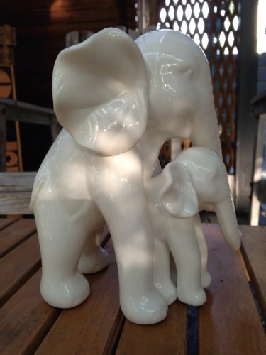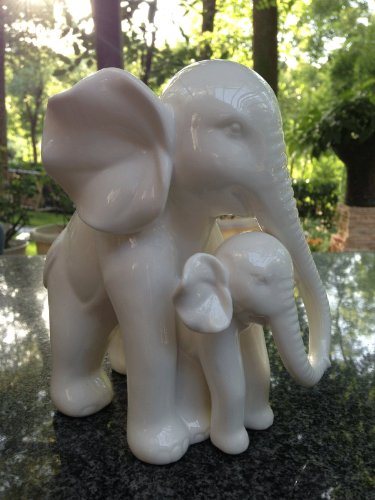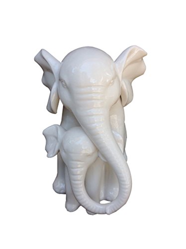 White Porcelain Mother and Baby Elephant Statue/figurine in High Gloss Finish.