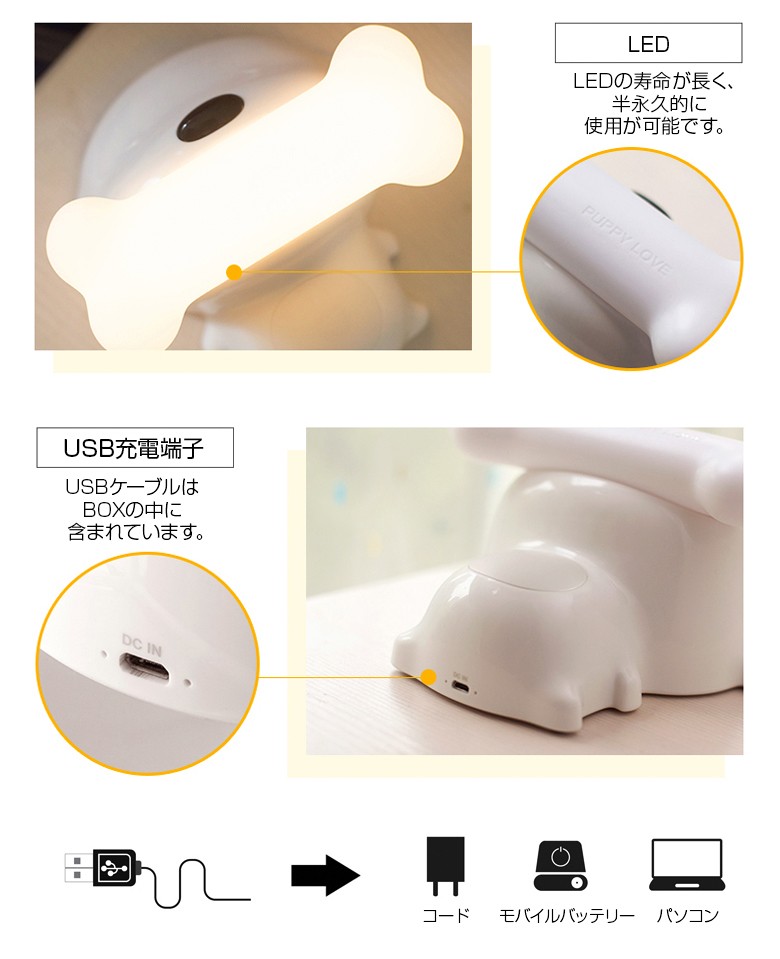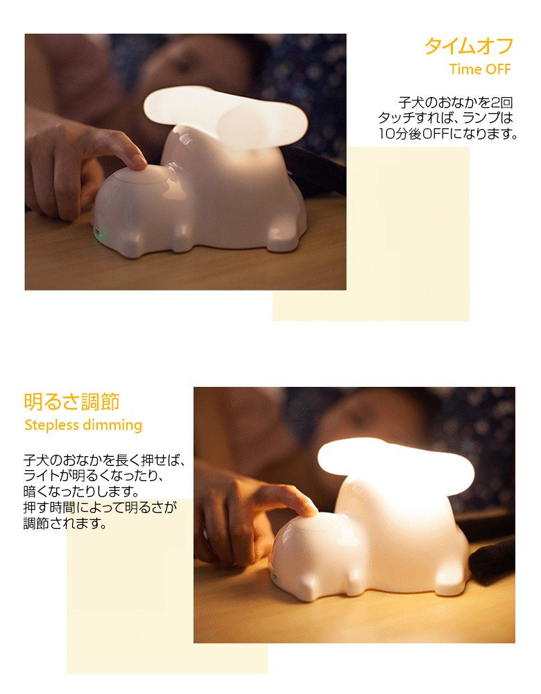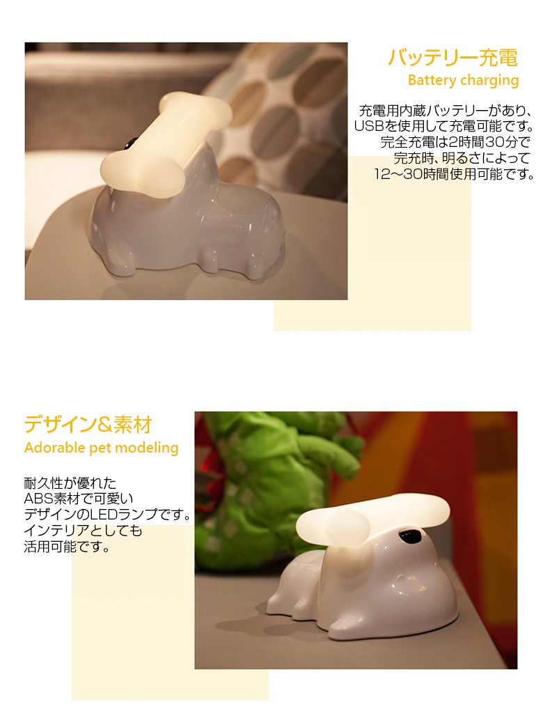 商品名LEDランプ 充電式ランプ【子犬LEDランプ】ワンタッチ LEDライト 明るさ調節 実用性 軽量 内蔵バッテリー